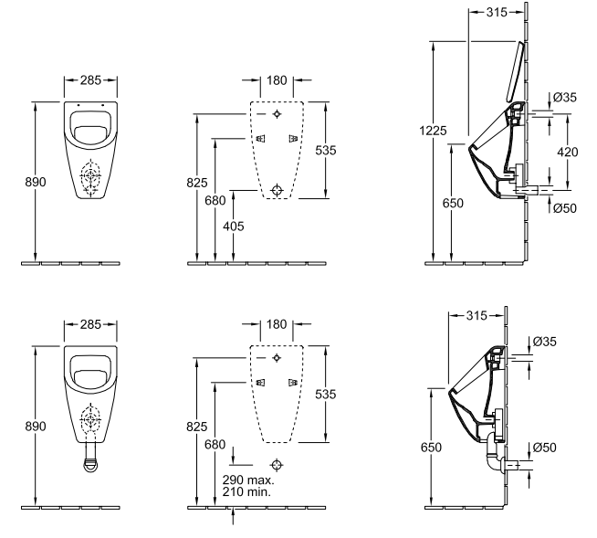 Писсуар, Villeroy&Boch, Subway, тип установки-подвесной, ширина, мм-285, глубина, мм-315, высота, мм-535, крышка-необходимо заказать, подвод воды-скрытый, сифон-необходимо заказать, материал-санфарфор, вид грязеотталкивающего покрытия-CeramicPlus, крепления в комплекте, цвет-Stone White, с отверстиями для крепежа крышки Писсуар, Villeroy&Boch, Subway, шгв 285*315*535, CeramicPlus, цвет-Stone White