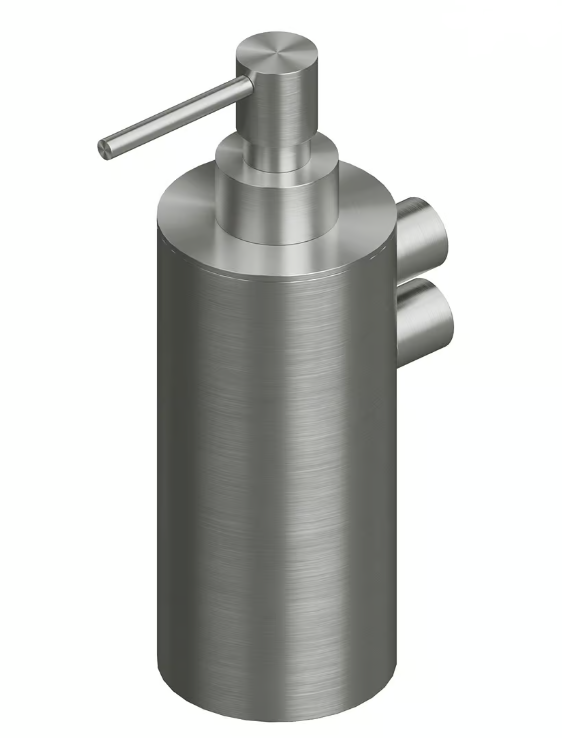 Дозатор для жидкого мыла, Quadro design, механический (нажимной), ширина, мм-64, глубина, мм-115, высота, мм-189, тип установки-настенный, материал колбы-нержавеющая сталь AISI304, цвет колбы-сталь брашированная, цвет дозатора-сталь брашированная Дозатор для жидкого мыла, Quadro design, шгв 64*115*189, цвет дозатора-сталь брашированная