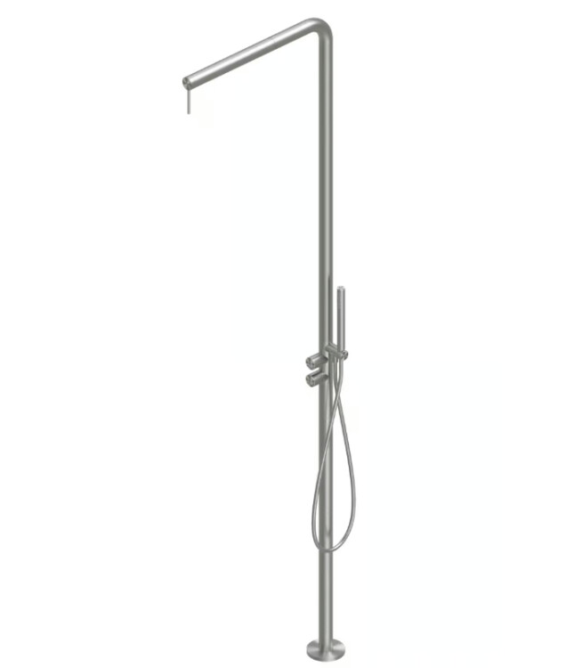 Душевая стойка, Quadro design, Q, смеситель-в комплекте, тип открывания воды-вентильный, тип регулирования воды-прогрессивный картридж, внутренняя часть-необходимо заказать, верхний душ-есть, размер верхнего душа,мм-242, держатель верхнего душа-есть, вынос, мм-268, количество режимов верхнего душа-1, размер штанги, мм-2237, ручной душ-в комплекте, материал-нержавеющая сталь AISI316L, цвет-сталь брашированная Душевая стойка, Quadro design, Q, цвет-сталь брашированная