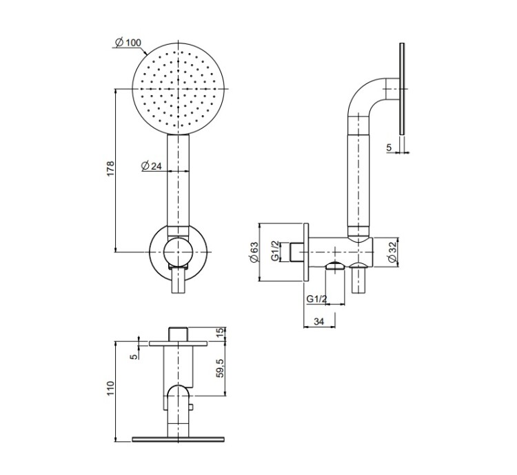 Душевой набор, Quadro design, размер душевого диска, мм-100, форма лейки-круглая, количество режимов-1, держатель для душа-есть, шланг-есть, длина шланга, мм-1500, шланговое подключение-есть, материал-нержавеющая сталь AISI316L, цвет-сталь брашированная Душевой набор, Quadro design, цвет-сталь брашированная