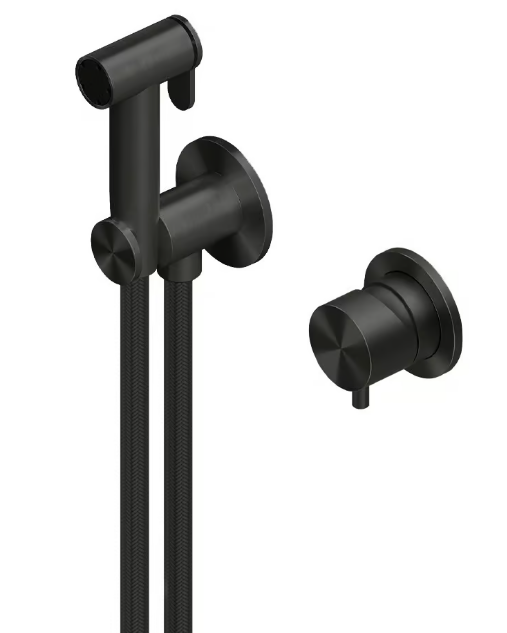 Гигиенический душ, Quadro design, Complements, настенный встраиваемый смеситель-в комплекте, шланг-есть, шланговое подключение с держателем-есть, настенное крепление, внутренняя часть-необходимо заказать, материал-нержавеющая сталь AISI316L, цвет-золото черное (Black gold) Гигиенический душ, Quadro design, Complements, цвет-золото черное (Black gold)