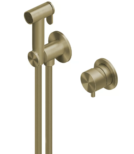 Гигиенический душ, Quadro design, Complements, настенный встраиваемый смеситель-в комплекте, шланг-есть, шланговое подключение с держателем-есть, настенное крепление, внутренняя часть-необходимо заказать, материал-нержавеющая сталь AISI316L, цвет-золото светлое (Light Gold) Гигиенический душ, Quadro design, Complements, цвет-золото светлое (Light Gold)