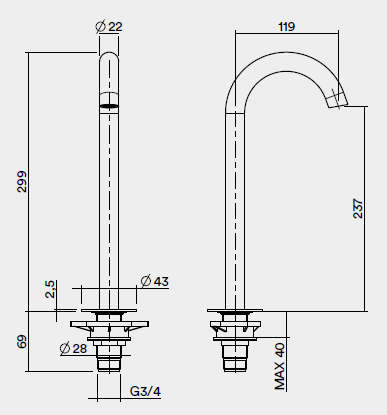 Излив, Quadro design, на раковину/столешницу, вынос излива, мм-119, стандарт подводки-3/4", цвет-золото черное Излив, Quadro design, цвет-золото черное