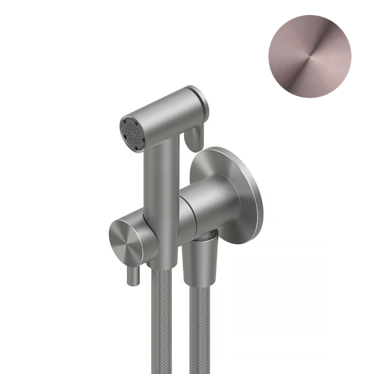 Гигиенический душ, Quadro design, Complements, с запорным вентилем, держатель с шланговым подсоединением-в комплекте, цвет-золото розовое PVD Гигиенический душ, Quadro design, Complements, цвет-золото розовое PVD