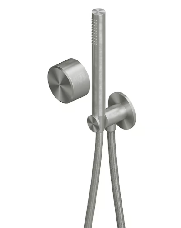 Смеситель для душа, Quadro design, Stereo, на 1 потребитель, тип открывания воды-одновентильный, тип регулирования воды-прогрессивный картридж, монтаж-настенный встраиваемый, отверстия для монтажа-2, внутренняя часть-необходимо заказать, в комплекте-ручной душ, шланг, шланговое подсоединение с держателем, материал-нержавеющая сталь AISI316L, цвет-сталь брашированная Смеситель для душа, Quadro design, Stereo, на 1 потребитель, цвет-сталь брашированная