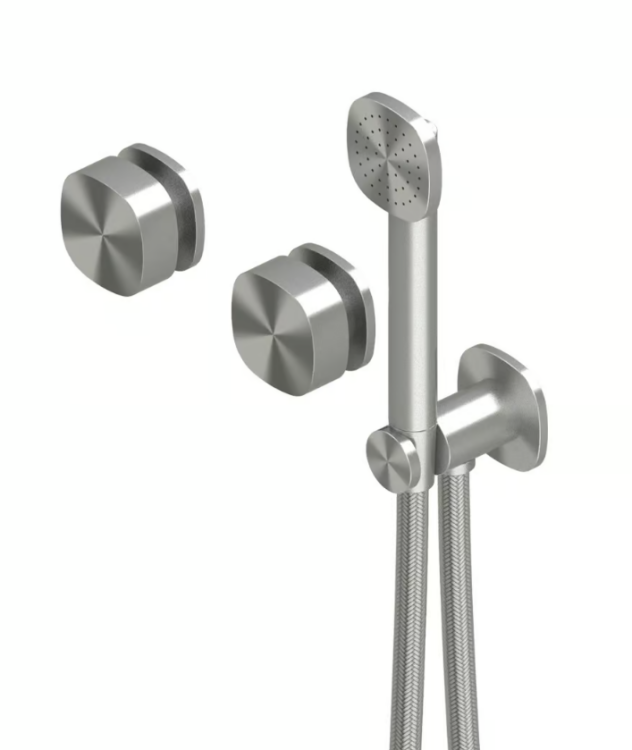 Смеситель для душа, Quadro design, SUPER, тип открывания воды-вентильный, тип регулирования воды-керамическая кран-букса, монтаж-настенный встраиваемый, отверстия для монтажа-3, в комплекте-ручной душ, внутренняя часть-необходимо заказать, материал-нержавеющая сталь AISI316L, цвет-сталь брашированная Смеситель для душа, Quadro design, SUPER, цвет-сталь брашированная