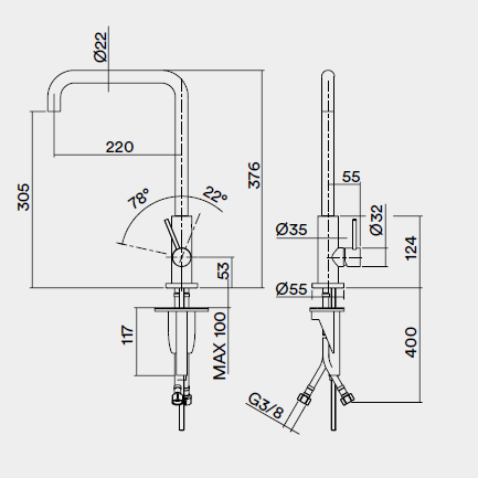 Смеситель для кухни, Quadro design, Kitchen Inox, тип открывания воды-однорычажный, тип регулирования воды-керамический картридж, монтаж-на раковину/столешницу, отверстия для монтажа-1, высота, мм-376, вынос излива, мм-220, тип излива-поворотный, тип подводки-гибкая, стандарт подвода воды-3/8", материал-нержавеющая сталь AISI316L, цвет-сталь брашированная Смеситель для кухни, Quadro design, Kitchen Inox, цвет-сталь брашированная