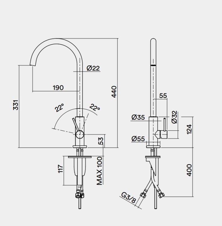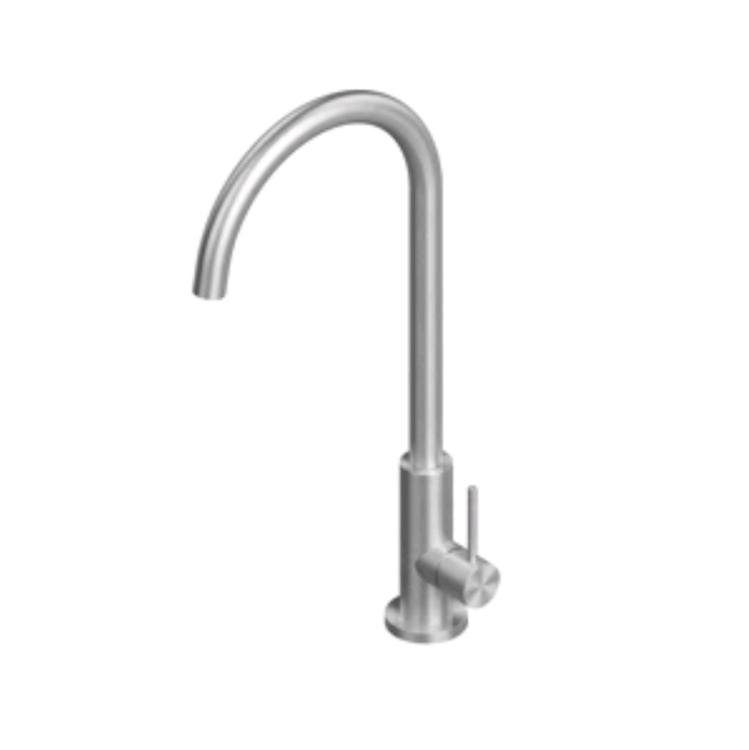 Смеситель для кухни, Quadro design, Kitchen Inox, тип открывания воды-однорычажный, тип регулирования воды-керамический картридж, монтаж-на раковину/столешницу, отверстия для монтажа-1, высота, мм-440, вынос излива, мм-190, тип излива-поворотный, тип подводки-гибкая, стандарт подвода воды-3/8", цвет-сталь брашированная Смеситель для кухни, Quadro design, Kitchen Inox, цвет-сталь брашированная