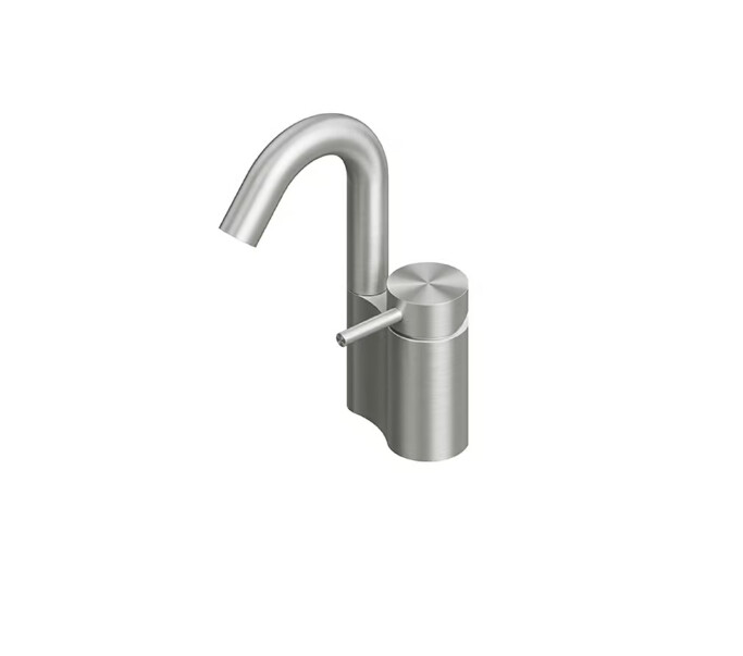 Смеситель для раковины, Quadro design, Ottavo, тип открывания воды-однорычажный, тип регулирования воды-керамический картридж, монтаж-на раковину/столешницу, отверстия для монтажа-1, высота, мм-190, вынос излива, мм-91, стандарт подвода воды-3/8", цвет-сталь брашированная Смеситель для раковины, Quadro design, Ottavo, цвет-сталь брашированная