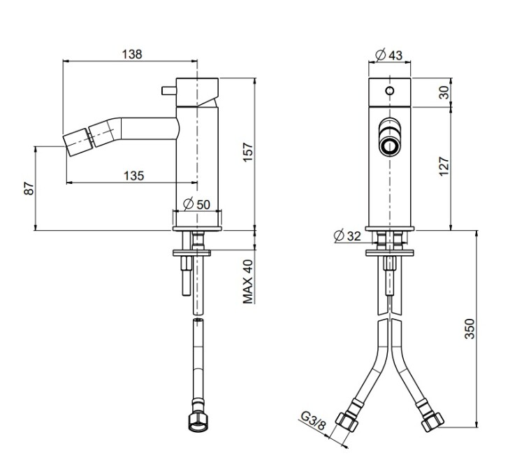 Смеситель для биде, Quadro design, Source, тип открывания воды-однорычажный, тип регулирования воды-керамический картридж, отверстия для монтажа-1, высота, мм-157, вынос излива, мм-135, донный клапан-отсутствует, тип подводки-гибкая, стандарт подвода воды-3/8", цвет-сталь брашированная Смеситель для биде, Quadro design, Source, цвет-сталь брашированная