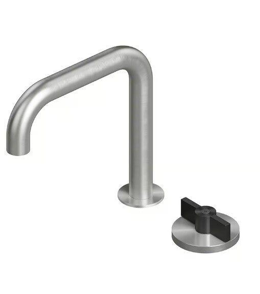 Смеситель для раковины, Quadro design, Valvola01, тип открывания воды-вентильный, тип регулирования воды-прогрессивный картридж, монтаж-на раковину/столешницу, отверстия для монтажа-2, высота, мм-172, вынос излива, мм-150, тип излива-поворотный, цвет ручки-золото черное, тип подводки-гибкая, стандарт подвода воды-3/8", 3/4", цвет смесителя-сталь брашированная Смеситель для раковины, Quadro design, Valvola01, цвет-сталь брашированная/золото черное