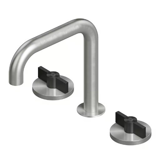 Смеситель для раковины, Quadro design, Valvola01, тип открывания воды-вентильный, тип регулирования воды-керамическая кран-букса, монтаж-на раковину/столешницу, отверстия для монтажа-3, высота, мм-172, вынос излива, мм-150, тип излива-поворотный, цвет ручки-золото черное, тип подводки-гибкая, стандарт подвода воды-1/2", цвет смесителя-сталь брашированная Смеситель для раковины, Quadro design, Valvola01, цвет-сталь брашированная/золото черное