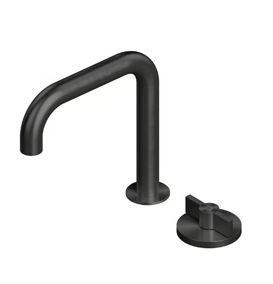 Смеситель для раковины, Quadro design, Valvola01, тип открывания воды-вентильный, тип регулирования воды-прогрессивный картридж, монтаж-на раковину/столешницу, отверстия для монтажа-2, высота, мм-172, вынос излива, мм-150, тип излива-поворотный, донный клапан-отсутствует, тип подводки-гибкая, стандарт подвода воды-3/8" и 3/4" , цвет-золото черное Смеситель для раковины, Quadro design, Valvola01, цвет-золото черное