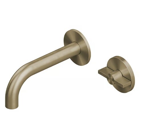 Смеситель для раковины, Quadro design, Valvola01, тип открывания воды-вентильный, тип регулирования воды-прогрессивный картридж, монтаж-настенный встраиваемый, отверстия для монтажа-2, вынос излива, мм-190, тип излива-неподвижный, внутренняя часть-необходимо заказать, цвет-золото светлое Смеситель для раковины, Quadro design, Valvola01, цвет-золото светлое