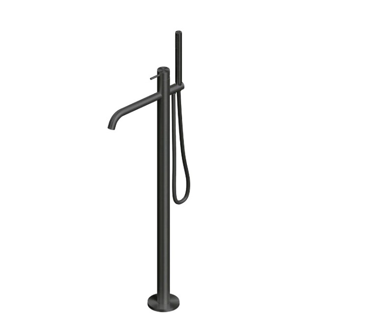 Смеситель для ванны и душа, Quadro design, Source, тип открывания воды-однорычажный, тип регулирования воды-керамический картридж, монтаж-напольный, отверстия для монтажа-1, вынос излива, мм-249, ручной душ, держатель для душа-в комплекте, внутренняя часть-необходимо заказать, материал-нержавеющая сталь AISI316L, цвет-золото черное Смеситель для ванны и душа, Quadro design, Source, цвет-золото черное