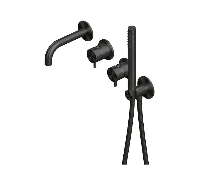 Смеситель для ванны и душа, Quadro design, Source, тип открывания воды-однорычажный, тип регулирования воды-керамический картридж, монтаж-настенный встраиваемый, отверстия для монтажа-4, вынос излива, мм-190, ручной душ-в комплекте, внутренняя часть-необходимо заказать, цвет-золото черное (Black gold) Смеситель для ванны и душа, Quadro design, Source, цвет-золото черное (Black gold)
