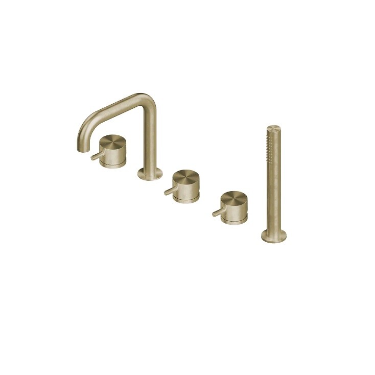 Смеситель для ванны и душа, Quadro design, Source, тип открывания воды-вентильный, тип регулирования воды-прогрессивный картридж, монтаж-на борт ванны, отверстия для монтажа-5, вынос излива, мм-161, тип излива-поворотный, ручной душ-в комплекте, внутренняя часть-в комплекте, цвет-золото светлое (Light Gold) Смеситель для ванны и душа, Quadro design, Source, цвет-золото светлое (Light Gold)