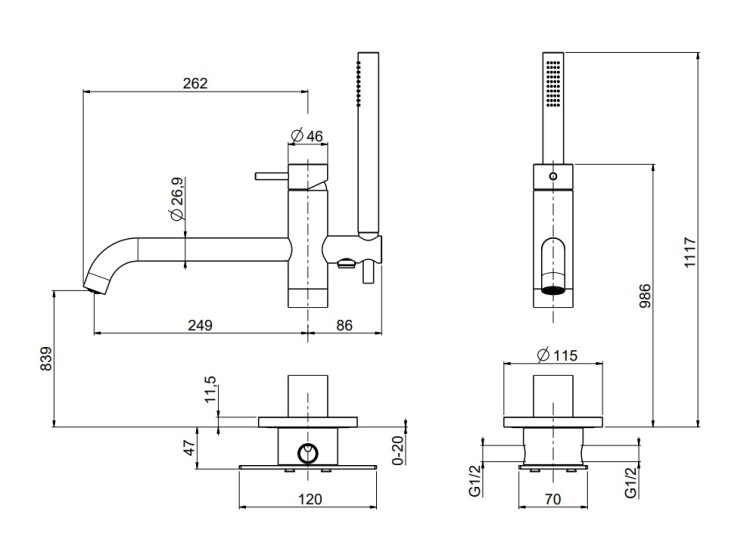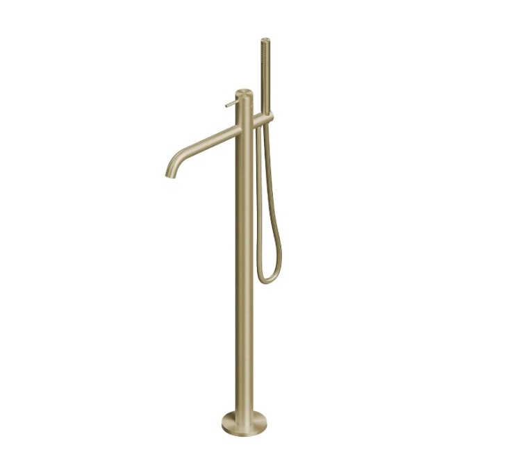 Смеситель для ванны и душа, Quadro design, Source, тип открывания воды-однорычажный, тип регулирования воды-керамический картридж, монтаж-напольный, отверстия для монтажа-1, вынос излива, мм-249, ручной душ, держатель для душа-в комплекте, внутренняя часть-необходимо заказать, материал-нержавеющая сталь AISI316L, цвет-золото светлое Смеситель для ванны и душа, Quadro design, Source, цвет-золото светлое