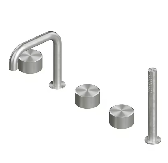 Смеситель для ванны и душа, Quadro design, Stereo, тип открывания воды-вентильный, тип регулирования воды-прогрессивный картридж, монтаж-на борт ванны, отверстия для монтажа-5, вынос излива, мм-161, тип излива-поворотный, ручной душ-в комплекте, материал-нержавеющая сталь AISI316L, цвет-сталь брашированная Смеситель для ванны и душа, Quadro design, Stereo, цвет-сталь брашированная