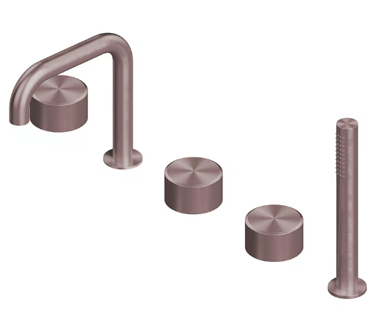 Смеситель для ванны и душа, Quadro design, Stereo, тип открывания воды-вентильный, тип регулирования воды-прогрессивный картридж, монтаж-на борт ванны, отверстия для монтажа-5, вынос излива, мм-161, тип излива-поворотный, ручной душ-в комплекте, материал-нержавеющая сталь AISI316L, цвет-золото розовое (Pink Gold) Смеситель для ванны и душа, Quadro design, Stereo, цвет-золото розовое (Pink Gold)