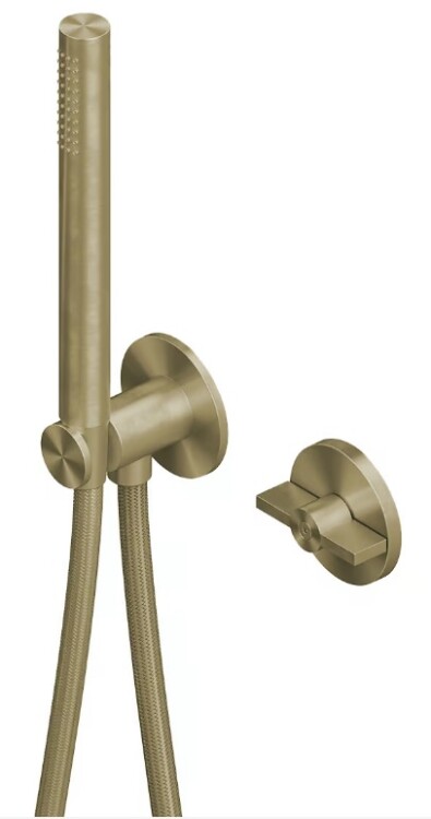 Смеситель для ванны и душа, Quadro design, Valvola01, тип открывания воды-вентильный, тип регулирования воды-прогрессивный картридж, монтаж-настенный встраиваемый, отверстия для монтажа-2, ручной душ-в комплекте, внутренняя часть-необходимо заказать, цвет-золото светлое Смеситель для ванны и душа, Quadro design, Valvola01, цвет-золото светлое