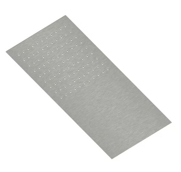 Верхний душ, Quadro design, тип установки-настенный, потолочный, форма-прямоугольная, количество режимов-1, тип струи-дождь, с силиконовыми насадками, цвет-сталь брашированная Верхний душ, Quadro design, цвет-сталь брашированная