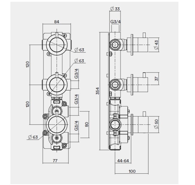 Внутренняя часть, Quadro design, FixKit, назначение-смеситель для душа термостатический с 2-мя запорными вентилями, стандарт подвода воды-3/4", сталь брашированная Внутренняя часть, Quadro design, FixKit, назначение-смеситель для душа термостатический с 2-мя запорными вентилями, сталь брашированная