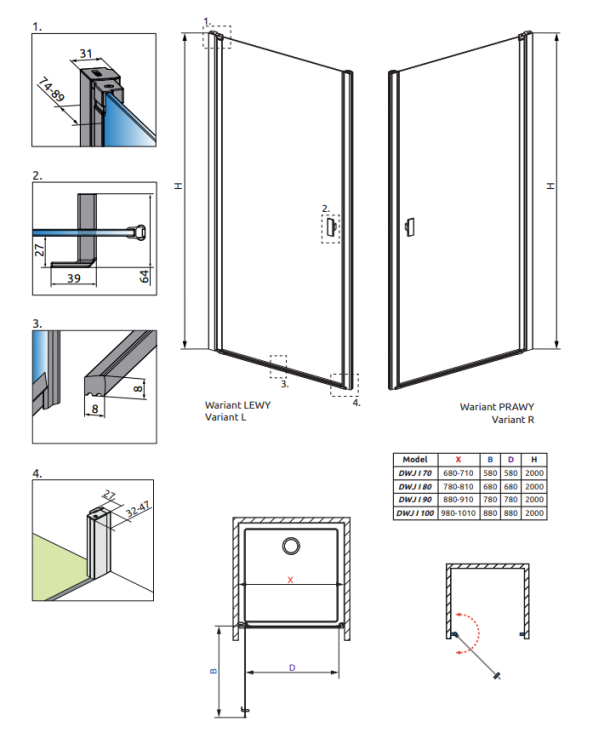 Дверь, Radaway, Nes 8 DWJ I, ширина, мм-700, высота, мм-2000, установка-в нишу, обрамление-частичное, открывание-распашное, петли-слева, цвет фурнитуры-хром, материал-стекло, цвет стекла-прозрачный, без декора, вид грязеотталкивающего покрытия-Easy Clean, толщина стекла-8 мм Дверь, Radaway, Nes 8 DWJ I, шв 700*2000, петли-слева, цвет фурнитуры-хром, цвет стекла-прозрачный, Easy Clean