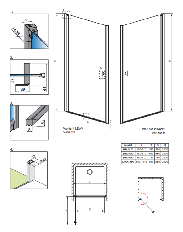 Дверь, Radaway, Nes DWJ I, ширина, мм-700, высота, мм-2000, установка-в нишу, обрамление-частичное, открывание-маятниковое, петли-слева, цвет фурнитуры-черный, материал-стекло, цвет стекла-прозрачный, без декора, вид грязеотталкивающего покрытия-Easy Clean Дверь, Radaway, Nes DWJ I, шв 700*2000, петли-слева, цвет фурнитуры-черный, цвет стекла-прозрачный, Easy Clean