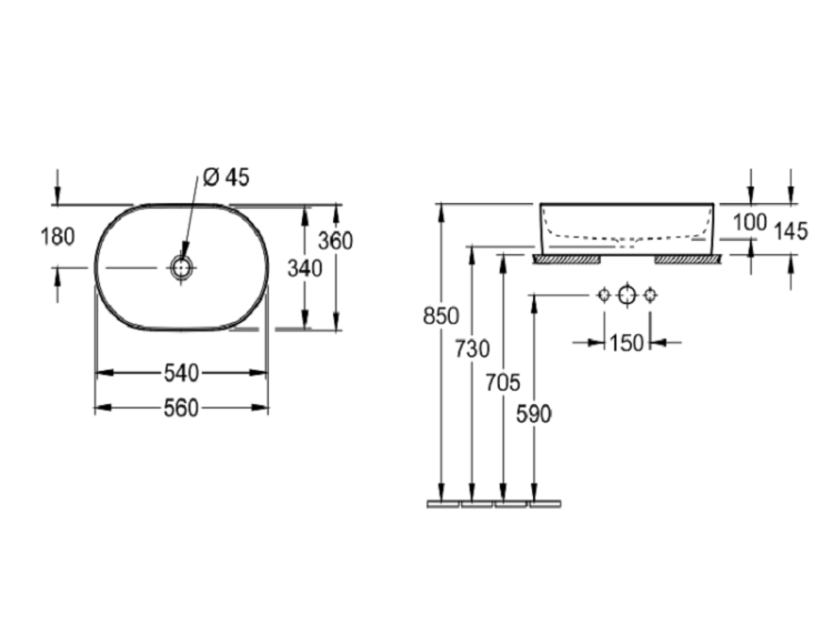 Раковина, Villeroy&Boch, Collaro, ширина, мм-560, глубина, мм-360, высота, мм-145, тип установки-на столешницу, отверстия для смесителя-отсутствуют, цвет-альпийский белый Раковина, Villeroy&Boch, Collaro, шгв 560*360*145, отверстия для смесителя-отсутствуют, цвет-альпийский белый