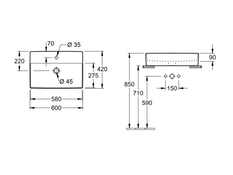 Раковина, Villeroy&Boch, Memento, ширина, мм-600, глубина, мм-420, высота, мм-90, тип установки-на столешницу, отверстия для смесителя-1 сквозное, 2 промаркированных, перелив-есть, материал-TitanCeram, крепления в комплекте, цвет-alpine white Раковина, Villeroy&Boch, Memento, шгв 600*420*90, отверстия для смесителя-1 сквозное, 2 промаркированных, цвет-alpine white