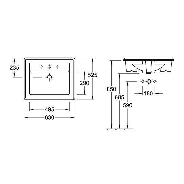 Раковина, Villeroy&Boch, Hommage, ширина, мм-630, глубина, мм-525, высота, мм-200, тип установки-встраиваемый, отверстия для смесителя-одно, перелив-есть, декор-без декора, материал-санфарфор, грязеотталкивающее покрытие-CeramicPlus, цвет-альпийский белый Раковина, Villeroy&Boch, Hommage, шгв 630*525*200, CeramicPlus, цвет-альпийский белый