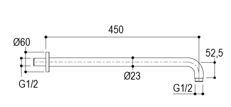 Держатель верхнего душа, Ritmonio, вид-настенный, вынос, мм-450, цвет-Brushed Chrome Держатель верхнего душа, Ritmonio, цвет-Brushed Chrome