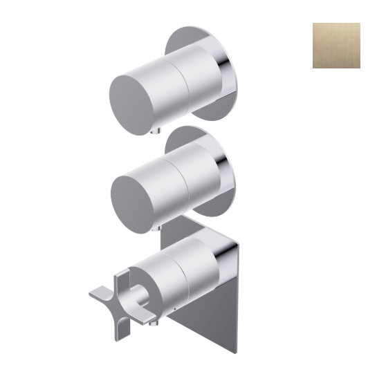 Смеситель для душа, Ritmonio, Diametro35 Cross, на 2 потребителя, тип открывания воды-однорычажный, тип регулирования воды-термостатический картридж, монтаж-настенный встраиваемый, отверстия для монтажа-3, внутренняя часть-необходимо заказать, цвет-Brushed Champagne Смеситель для душа, Ritmonio, Diametro35 Cross, на 2 потребителя, цвет-Brushed Champagne