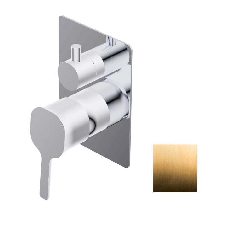 Смеситель для душа, Ritmonio, Taormina, на 2 потребителя, с поворотным переключателем, тип открывания воды-однорычажный, монтаж-настенный встраиваемый, отверстия для монтажа-2, внутренняя часть-необходимо заказать, ручка с рычагом-PR35MC101GOX, цвет смесителя и ручки-золото брашированное (Brushed Gold) Смеситель для душа, Ritmonio, Taormina, на 2 потребителя, ручка с рычагом-PR35MC101GOX, с поворот. переключ., цвет смесителя и ручки-золото брашированное (Brushed Gold)