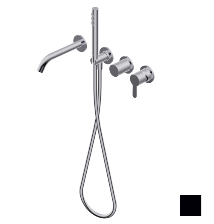 Смеситель для ванны и душа, Ritmonio, Diametro35 Elegance, тип открывания воды-однорычажный, тип регулирования воды-керамический картридж, монтаж-настенный встраиваемый, отверстия для монтажа-4, вынос излива, мм-200, тип излива-неподвижный, ручной душ-в комплекте, внутренняя часть-необходимо заказать, цвет-черный Смеситель для ванны и душа, Ritmonio, Diametro35 Elegance, цвет-черный