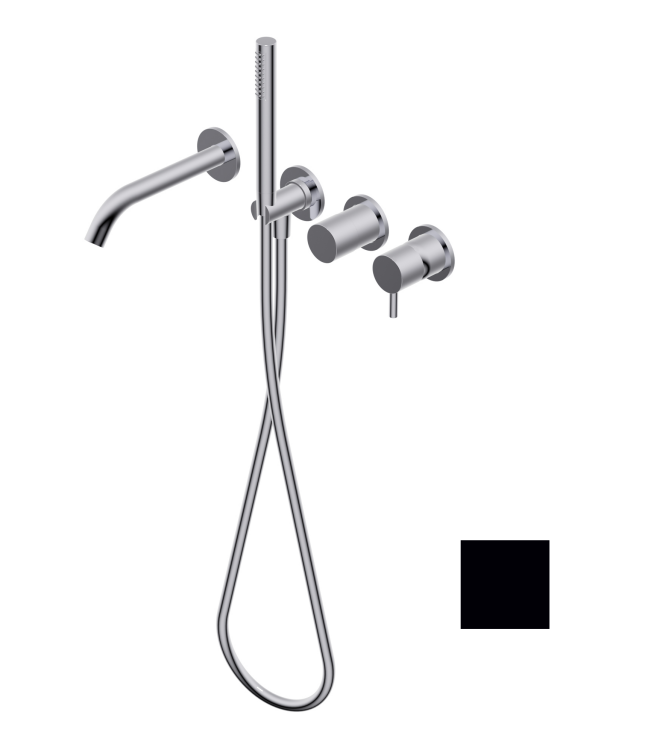 Смеситель для ванны и душа, Ritmonio, Diametro35 S, на 2/3 потребителя, с поворотным переключателем, тип открывания воды-однорычажный, монтаж-настенный встраиваемый, отверстия для монтажа-4, вынос излива, мм-200, тип излива-неподвижный, ручной душ и шланг-в комплекте, длина шланга-1500 мм, внутренняя часть-необходимо заказать, цвет-черный Смеситель для ванны и душа, Ritmonio, Diametro35 S, на 2/3 потребителя, с поворотным переключателем, цвет-черный