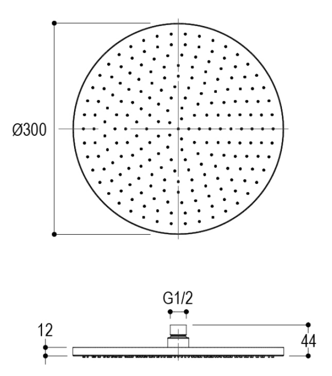 Верхний душ, Ritmonio, тип установки-настенный, потолочный, размер душевого диска, мм-300*300, форма-круглая, держатель-необходимо заказать, цвет-Brushed Chrome Верхний душ, Ritmonio, 300*300, цвет-Brushed Chrome