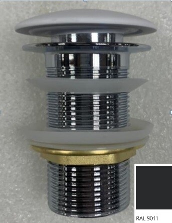 Донный клапан, Salini, D 501, для раковины, тип клапана-Up&Down, форма крышки-круглая, материал крышки-S-Stone, цвет крышки-RAL9011 матовый Донный клапан, Salini, D 501, для раковины, цвет крышки-RAL9011 матовый
