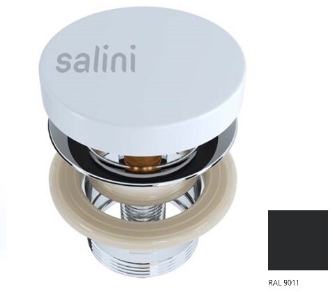 Донный клапан, Salini, D 504, для раковины, тип клапана-Up&Down, форма крышки-круглая, материал крышки-S-Stone, цвет крышки-RAL9011 матовый Донный клапан, Salini, D 504, для раковины, цвет крышки-RAL9011 матовый