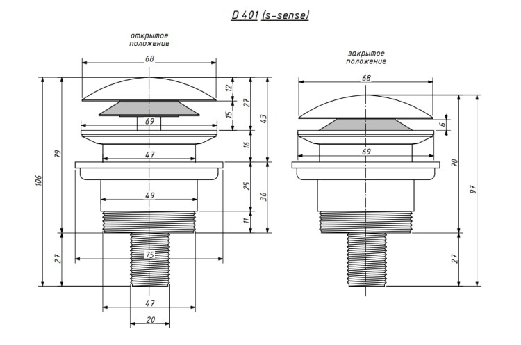 Тип клапана | нажимной (Push-Open/Click Clack/Stop&Go/Up&Down) |