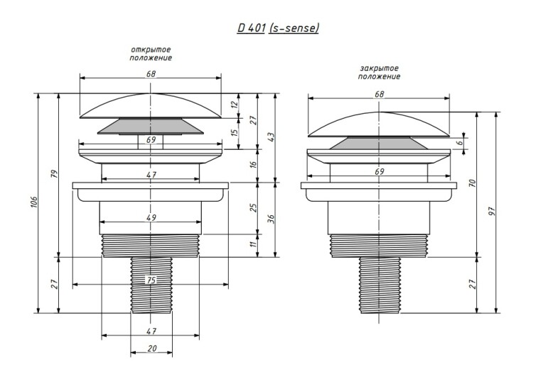 Тип клапана | нажимной (Push-Open/Click Clack/Stop&Go/Up&Down) |