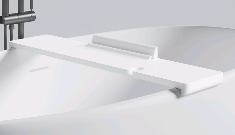 Полка-столик, Salini, Gabbiano, для ванны, ширина,мм-900, глубина,мм-200, высота,мм-72, тип установки-на борта ванны, материал-S-Stone (искуственный камень), с местом для надежного крепления бокала и с подставкой для планшета и телефона, цвет-белый матовый Полка-столик, Salini, Gabbiano, для ванны, шгв 900*200*72, цвет-белый матовый