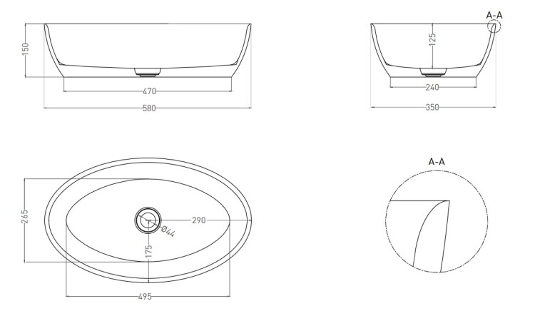 Раковина, Salini, ALDA 01, ширина, мм-580, глубина, мм-350, высота, мм-150, тип установки-накладной (настольный), отверстия для смесителя-отсутствуют, без перелива, без донного клапана, материал-искусственный камень, S-Stone, цвет снаружи-RAL5000 матовый, цвет внутри-белый матовый Раковина, Salini, ALDA 01, шгв 580*350*150, отверстия для смесителя-отсутствуют, цвет снаружи-RAL5000 матовый, цвет внутри-белый матовый