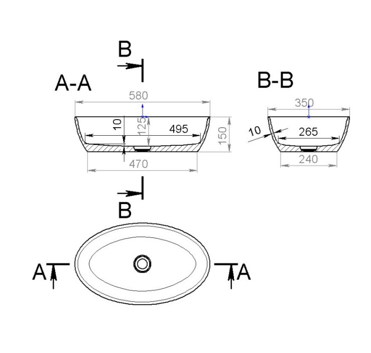 Раковина, Salini, ALDA, ширина, мм-580, глубина, мм-350, высота, мм-150, тип установки-накладной (настольный), отверстия для смесителя-отсутствуют, без перелива, без донного клапана, материал-искусственный камень, S-Stone, цвет-белый матовый Раковина, Salini, ALDA, шгв 580*350*150, отверстия для смесителя-отсутствуют, цвет-белый матовый