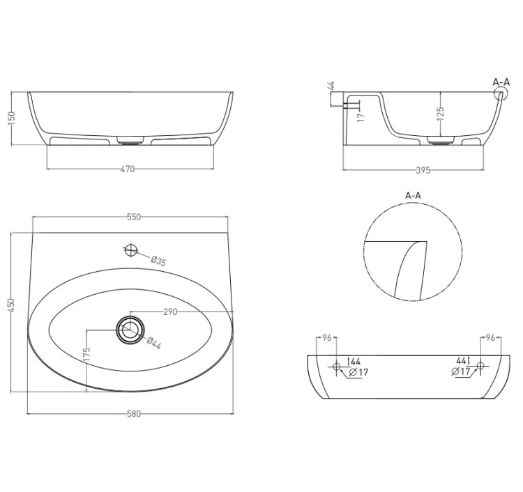 Раковина, Salini, ALDA Wall 02, ширина, мм-580, глубина, мм-450, высота, мм-150, тип установки-подвесной/накладной, отверстия для смесителя-отсутствуют, без перелива, донный клапан-необходимо заказать, материал-S-Sense (литьевой мрамор), цвет-белый Раковина, Salini, ALDA Wall 02, шгв 580*450*150, отверстия для смесителя-отсутствуют, цвет-белый