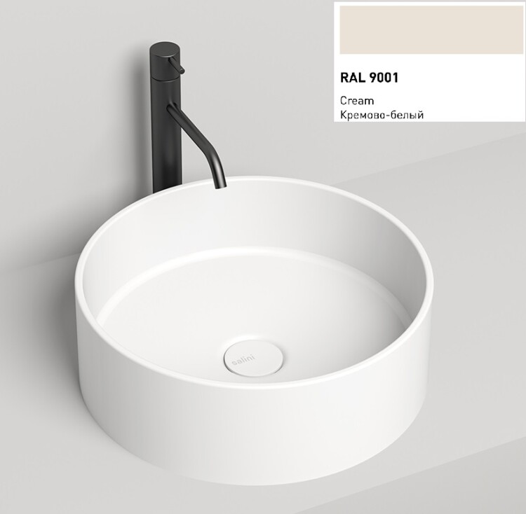 Раковина, Salini, Armonia 02, ширина, мм-440, глубина, мм-440, высота, мм-150, тип установки-накладной (настольный), отверстия для смесителя-отсутствуют, без перелива, без донного клапана, материал-S-Stone (искуственный камень), цвет-RAL9001 матовый Раковина, Salini, Armonia 02, шгв 440*440*150, отверстия для смесителя-отсутствуют, цвет-RAL9001 матовый