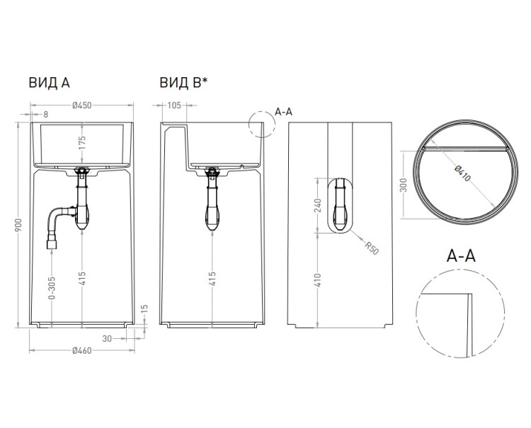 Раковина, Salini, Armonia Round 01, ширина, мм-450, глубина, мм-450, высота, мм-900, тип установки-напольный, отверстия для смесителя-отсутствуют, без перелива, материал-S-Sense (литьевой мрамор), крепления в комплекте, цвет-белый глянцевый Раковина, Salini, Armonia Round 01, шгв 450*450*900, отверстия для смесителя-отсутствуют, цвет-белый глянцевый