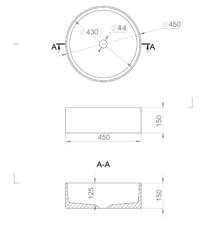 Раковина, Salini, Armonia, ширина, мм-450, глубина, мм-450, высота, мм-150, тип установки-накладной (настольный), отверстия для смесителя-отсутствуют, без перелива, без донного клапана, материал-искусственный камень, S-Stone, цвет-белый матовый Раковина, Salini, Armonia, шгв 450*450*150, отверстия для смесителя-отсутствуют, цвет-белый матовый