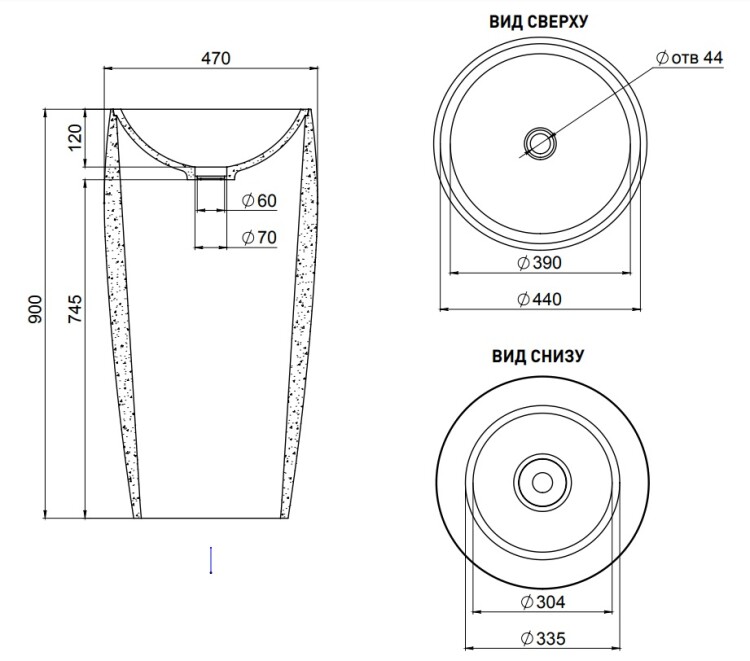 Раковина, Salini, Armonia, ширина, мм-470, глубина, мм-470, высота, мм-900, тип установки-напольный, отверстия для смесителя-отсутствуют, без перелива, в комплекте-донный клапан D502 "Click-Clack" цвет-белый, сифон, материал-литьевой мрамор, S-Sense, цвет-белый глянцевый Раковина, Salini, Armonia, шгв 470*470*900, отверстия для смесителя-отсутствуют, D502, цвет-белый глянцевый